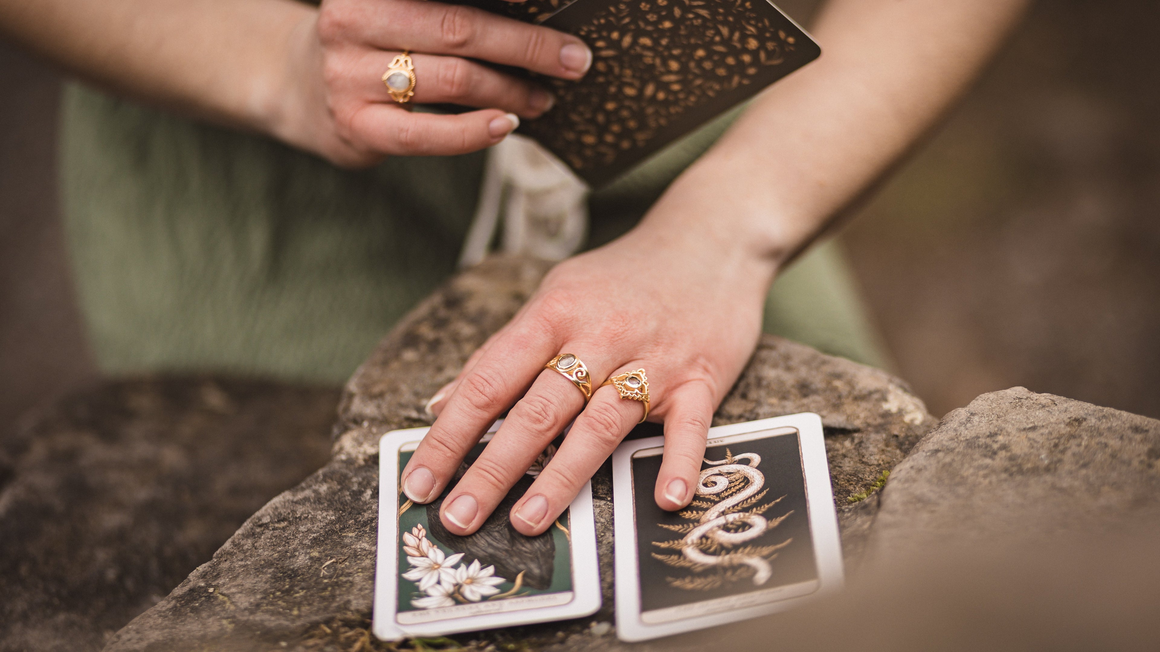 Wicca Mondphasen Ring - Obsidian & Tigerauge | Größenverstellbar