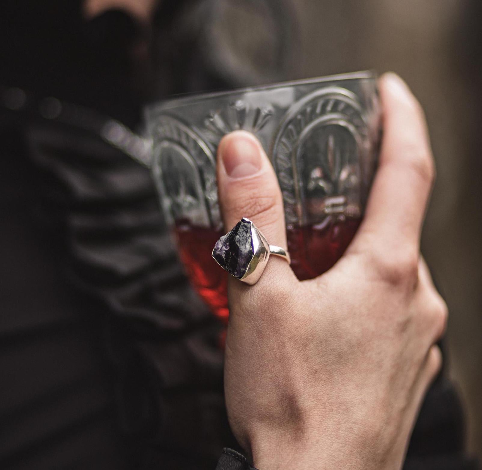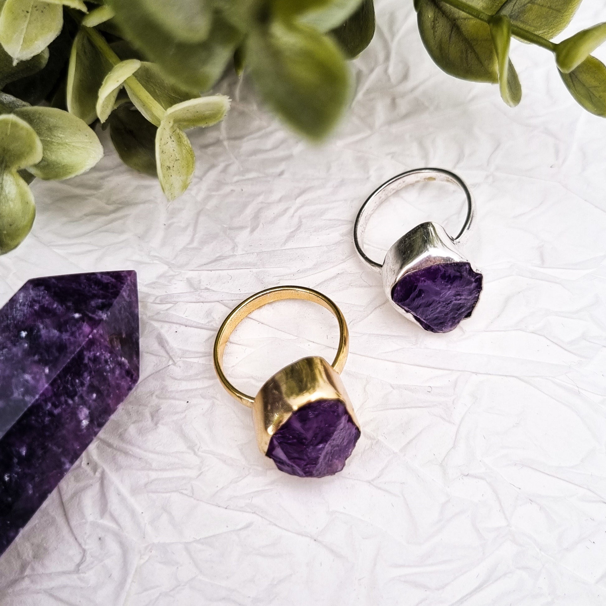 Amethyst Rohstein Ring | Gold und Silber | Größe 7