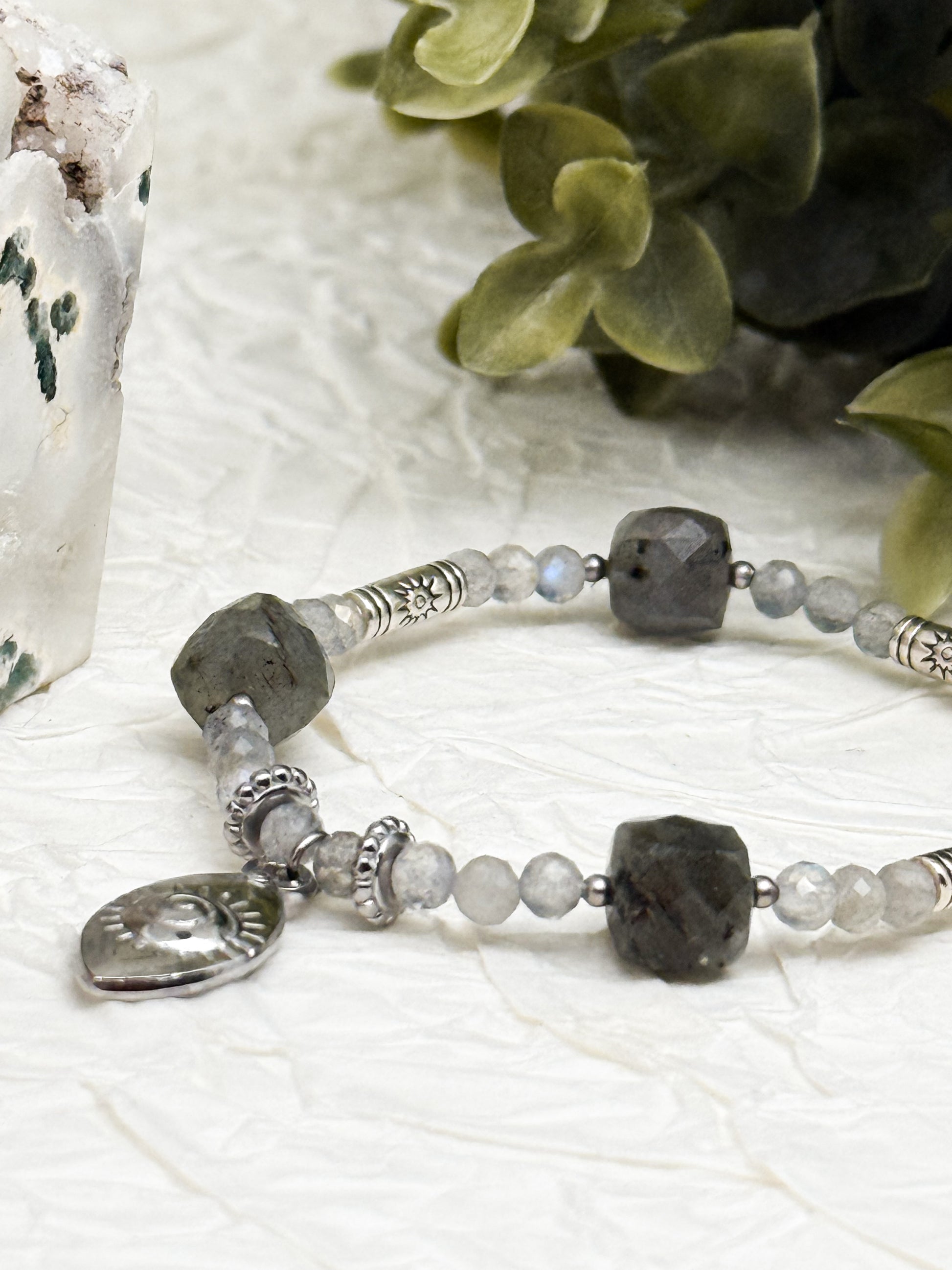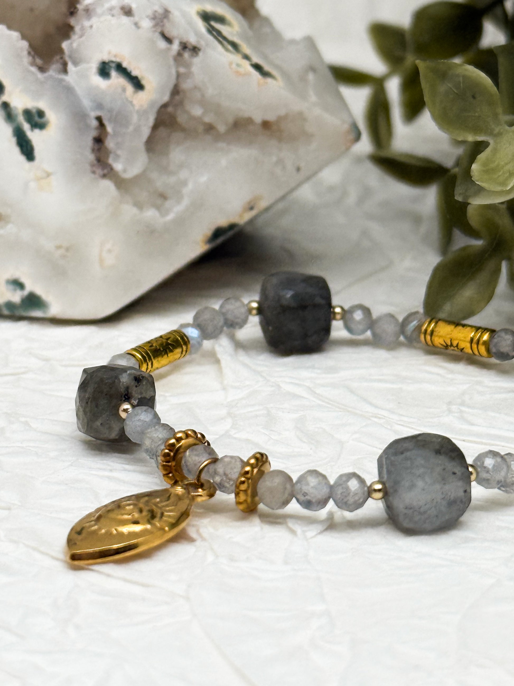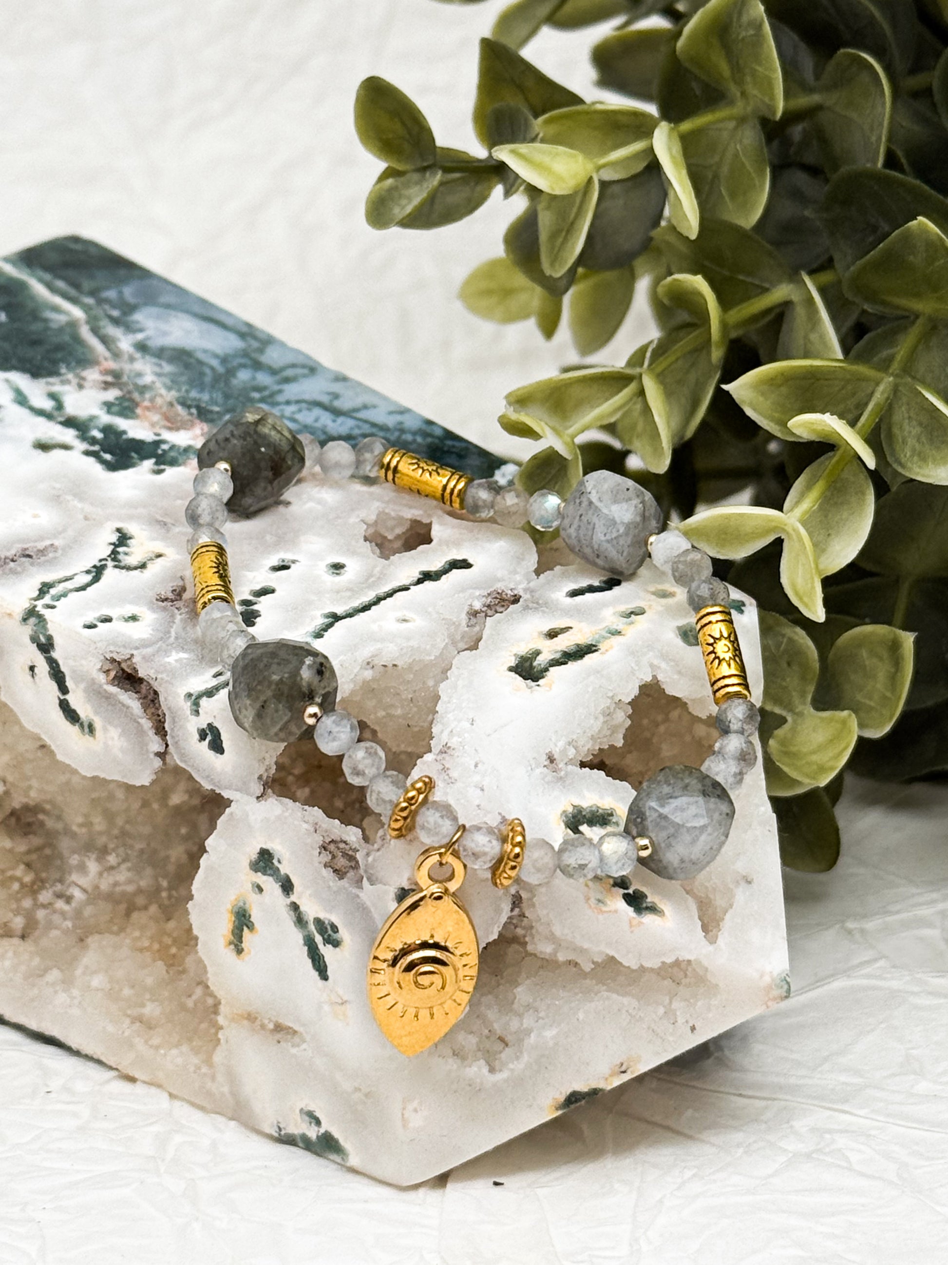Armband "Oculus Lucis" | Labradorit | Silber & Gold | Edelstahl