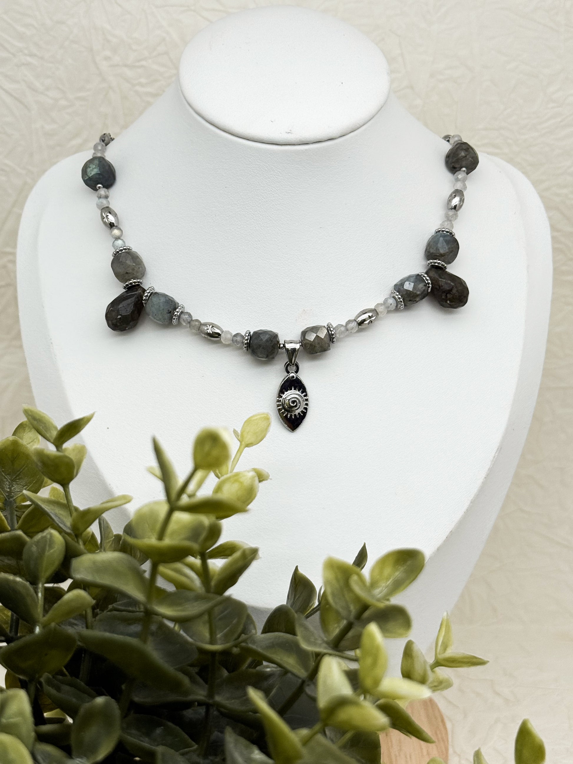 "Oculus Lucis" Perlenkette | Labradorit | Gold & Silber