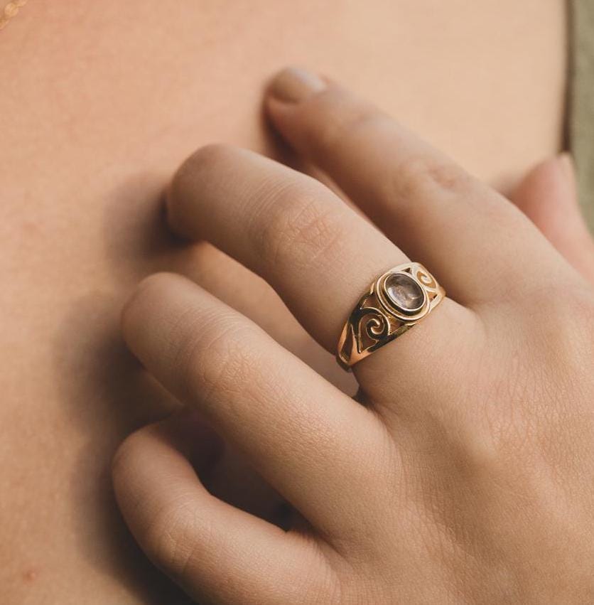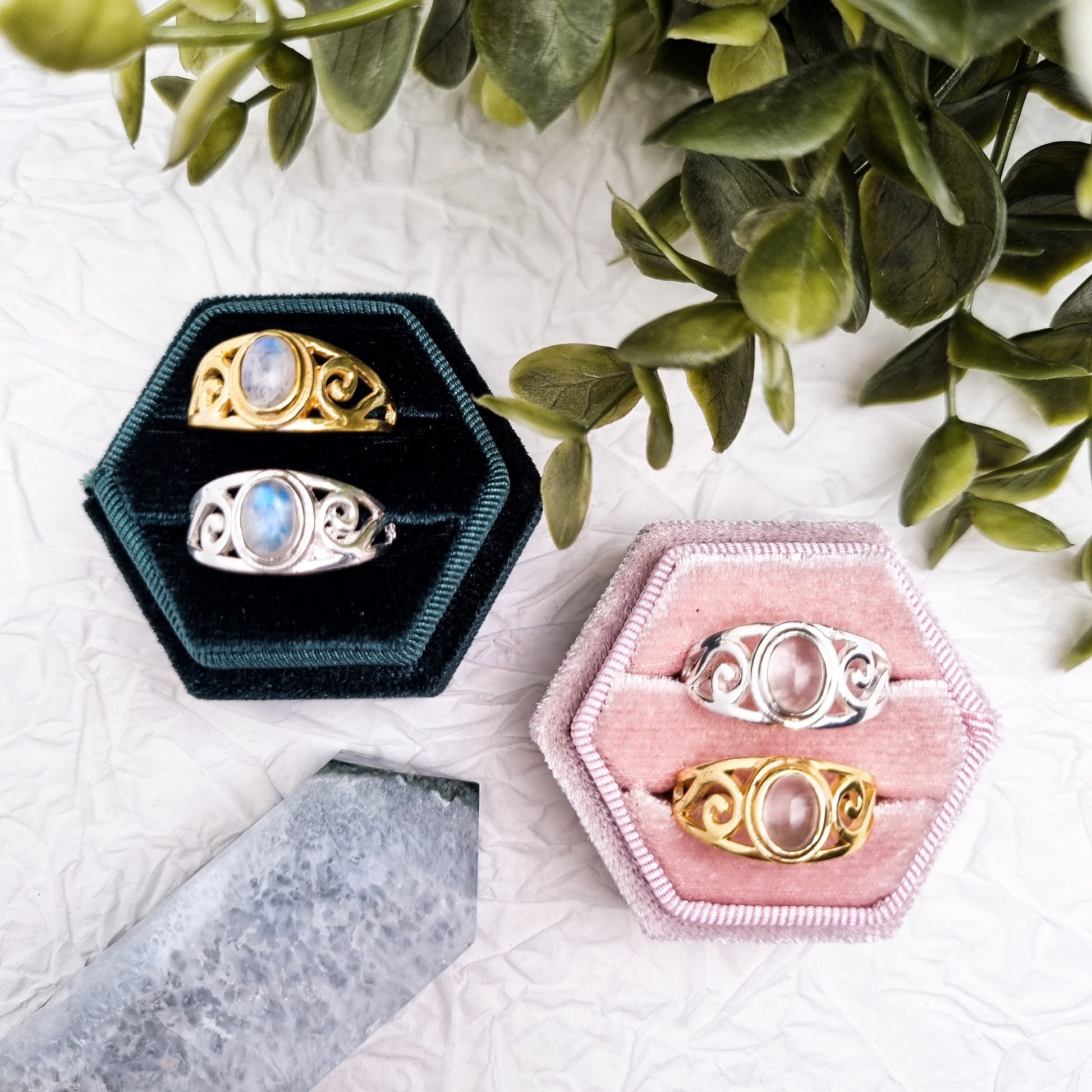 Balance of the world Ring Mondstein - Bergkristall | Größenverstellbar