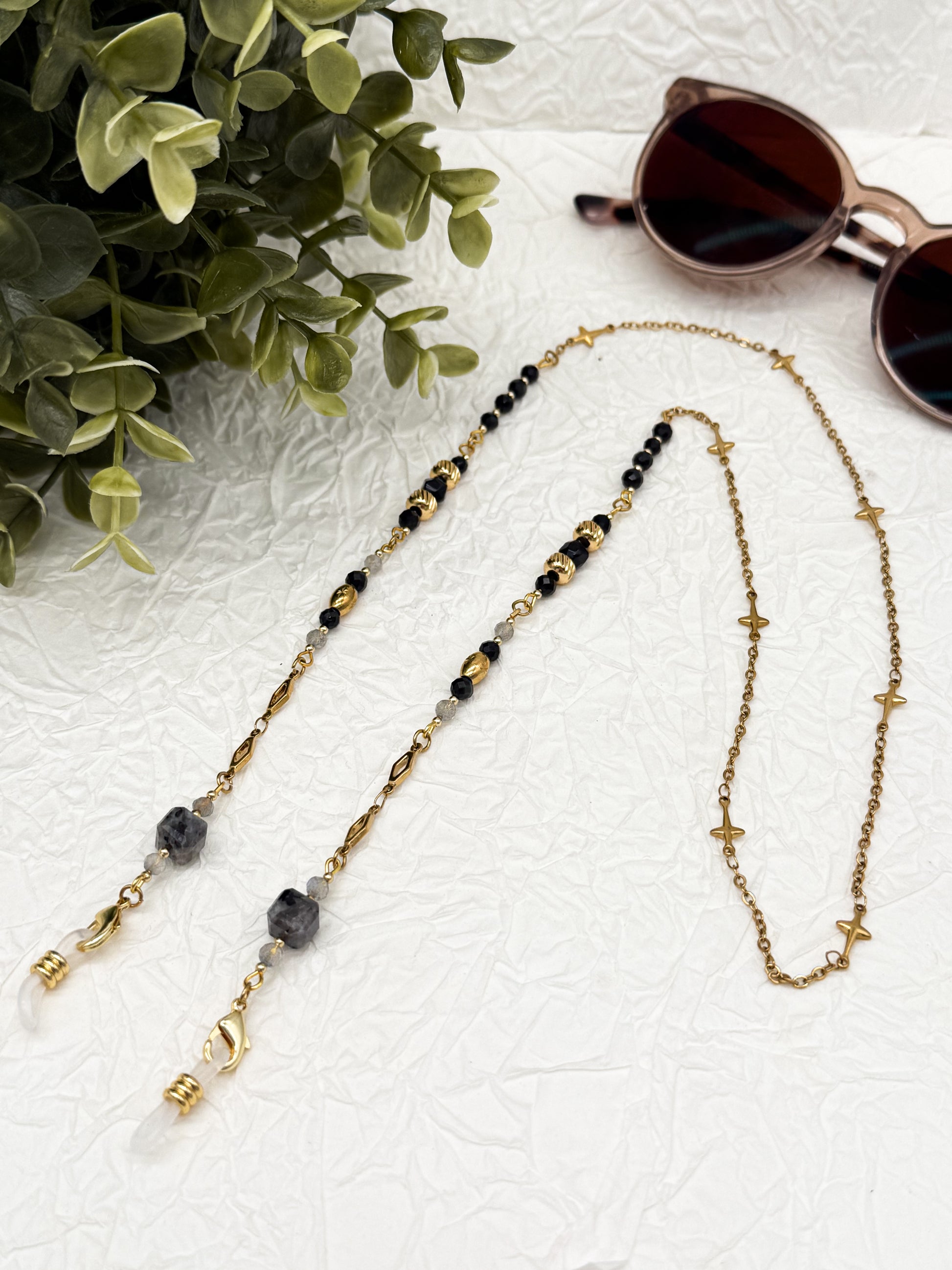 Brillenkette Dark Reputation mit Obsidian & Labradorit | Gold & Silber | Edelstahl