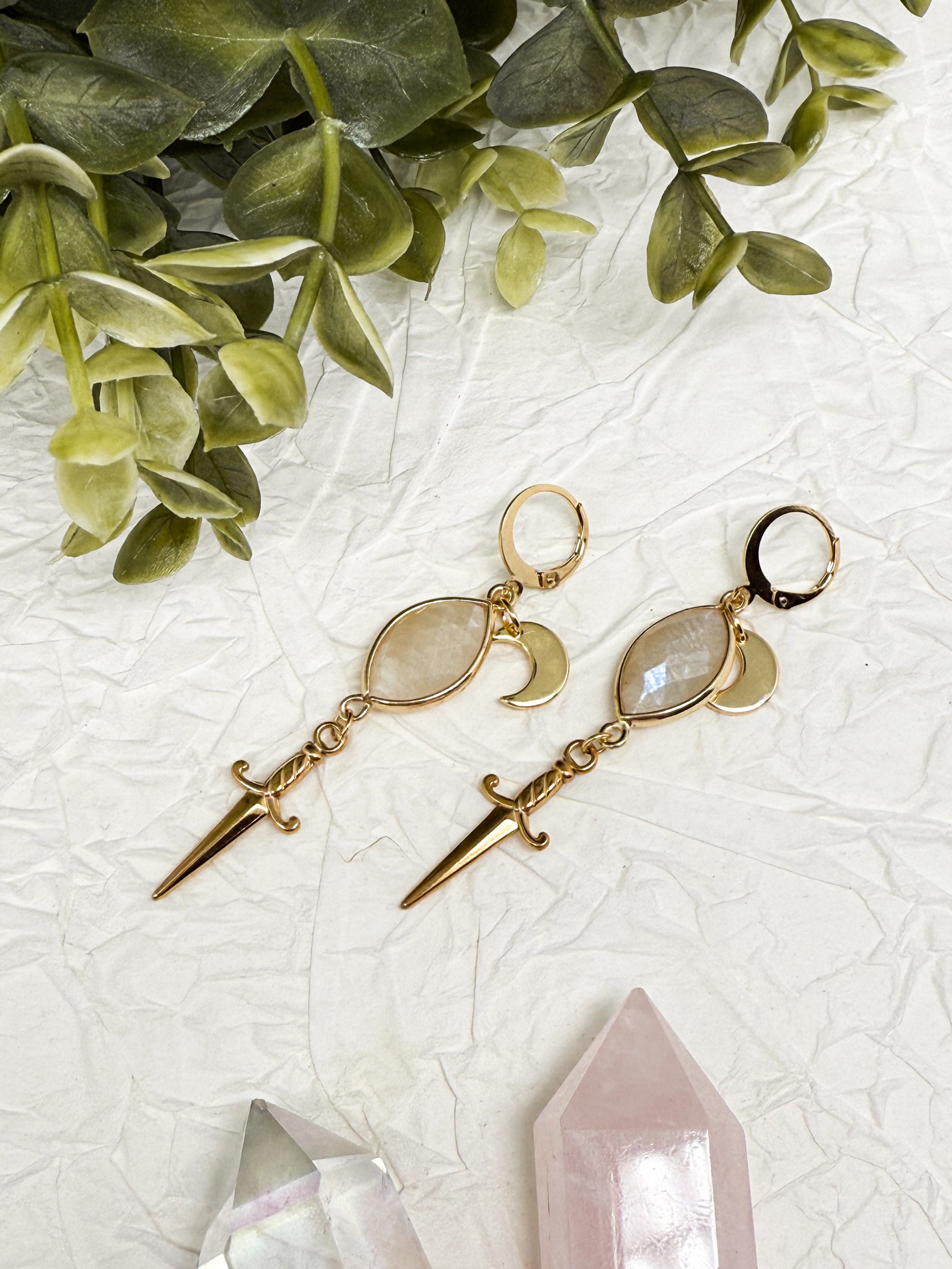 Moon Warrior Ohrringe mit Mondstein - Sonnenstein l Gold & Silber | Edelstahl