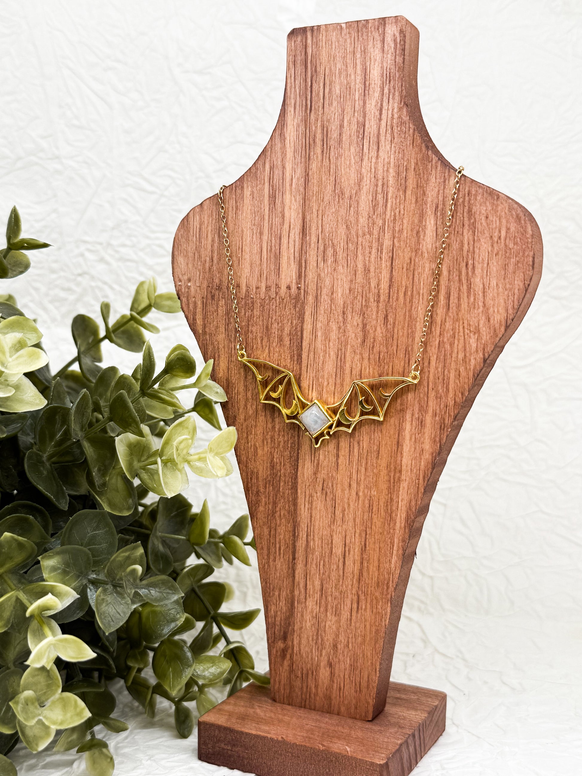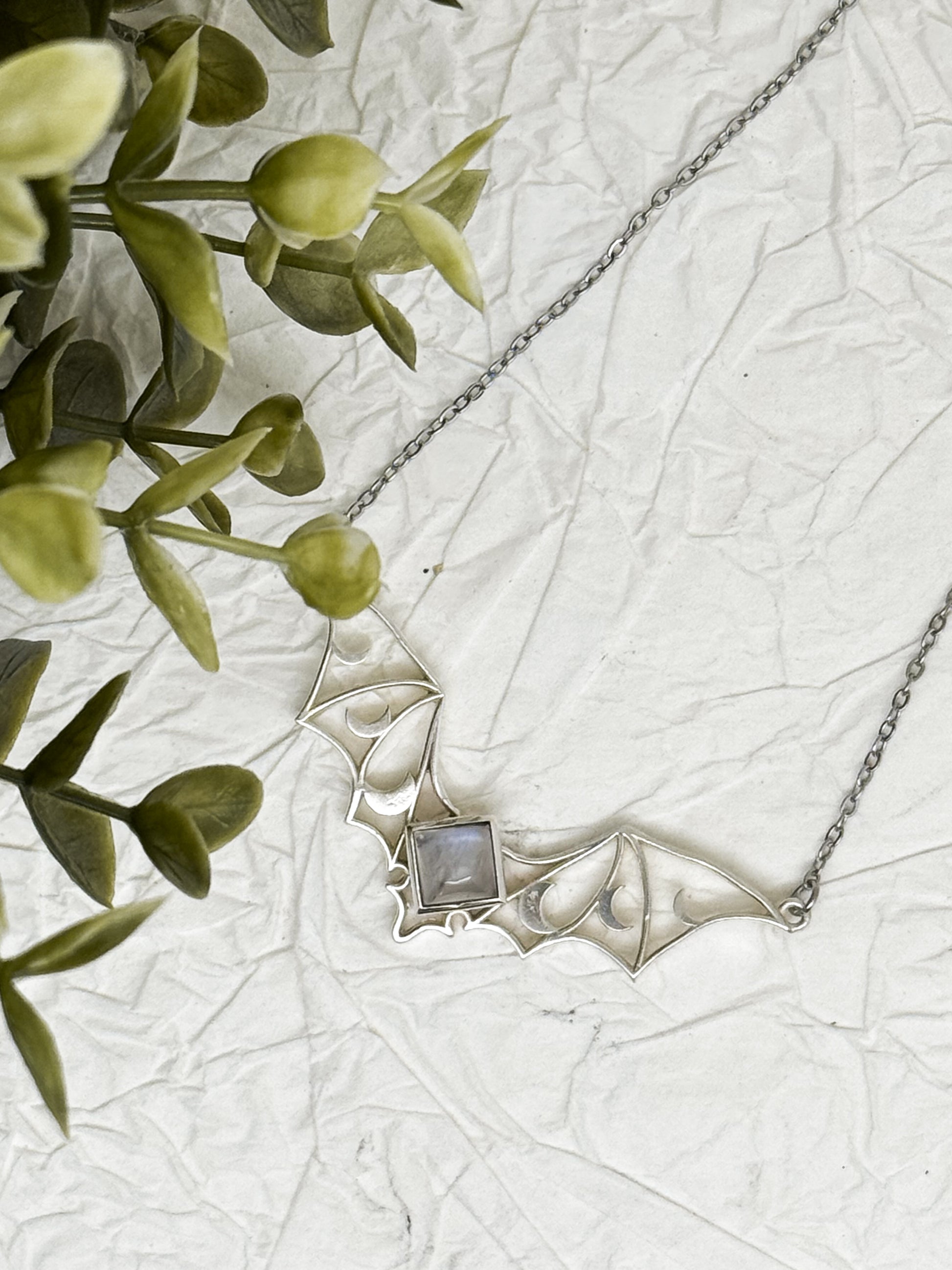 Moonbat Amulet Kette Gold & Silber | Mondstein, Labradorit, Amethyst & Obsidian | Edelstahl