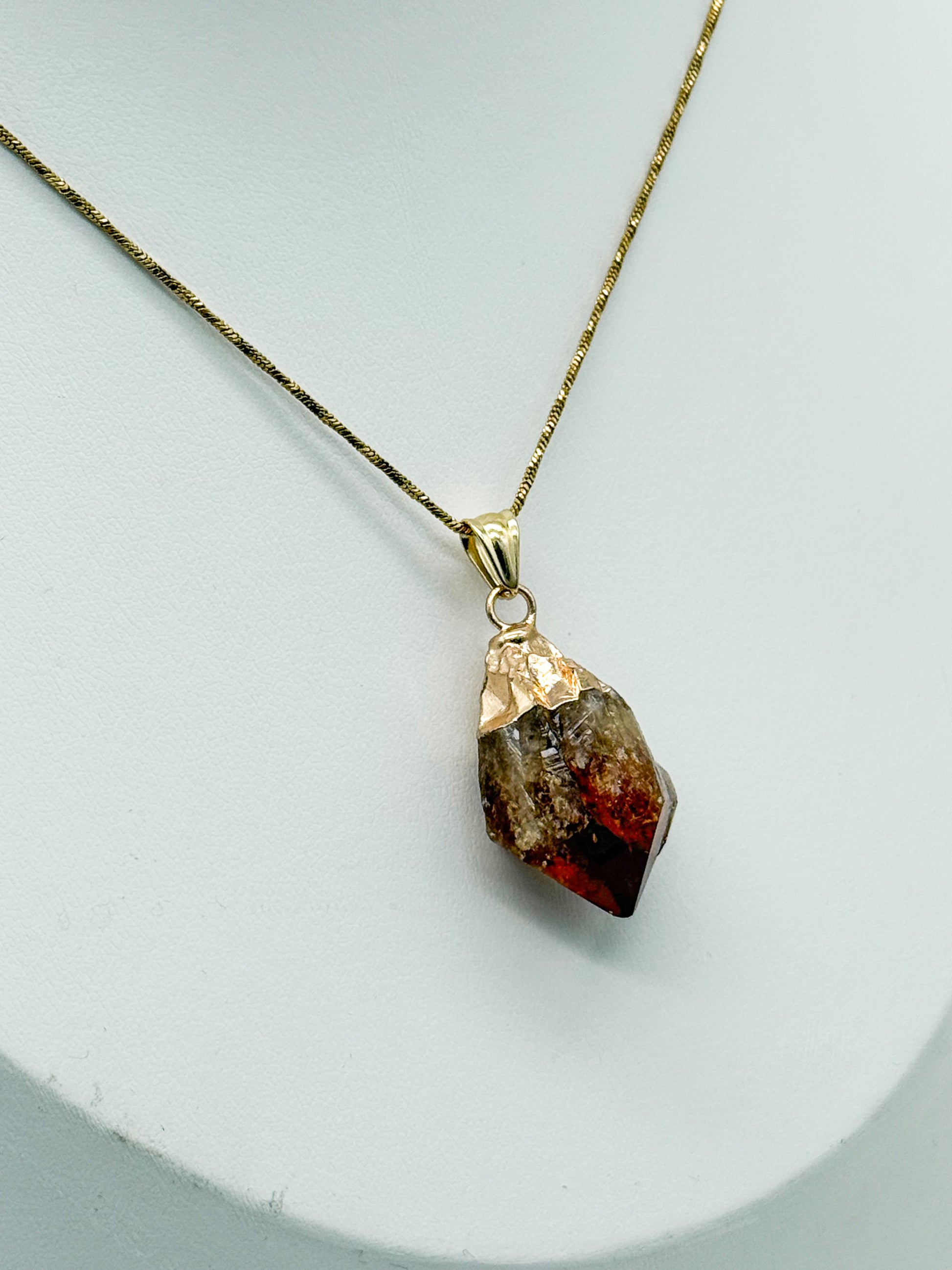 Der gebrannte Citrin gehört zu Quarzen und ist bekannt für seine orange-gelbe Farbgebung. Er entsteht indem farbintensiver Amethyst für gewisse Zeit Temperaturen von mehr als 500 Grad ausgesetzt wird.