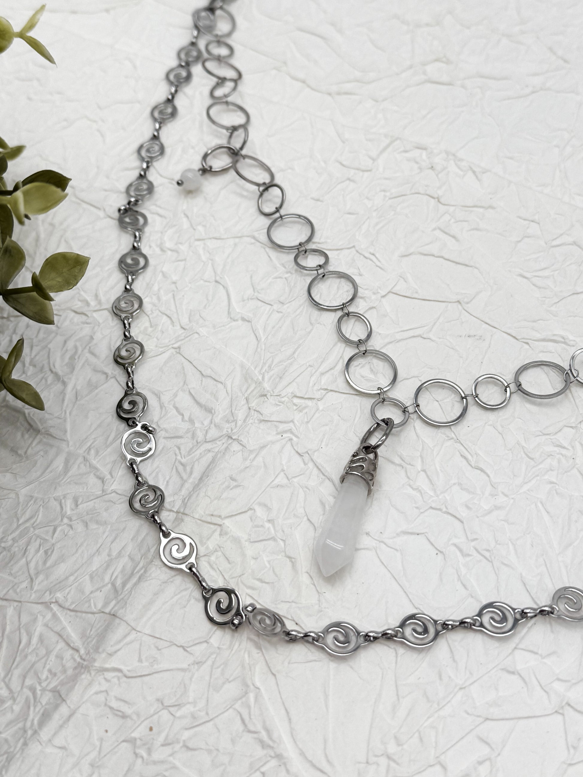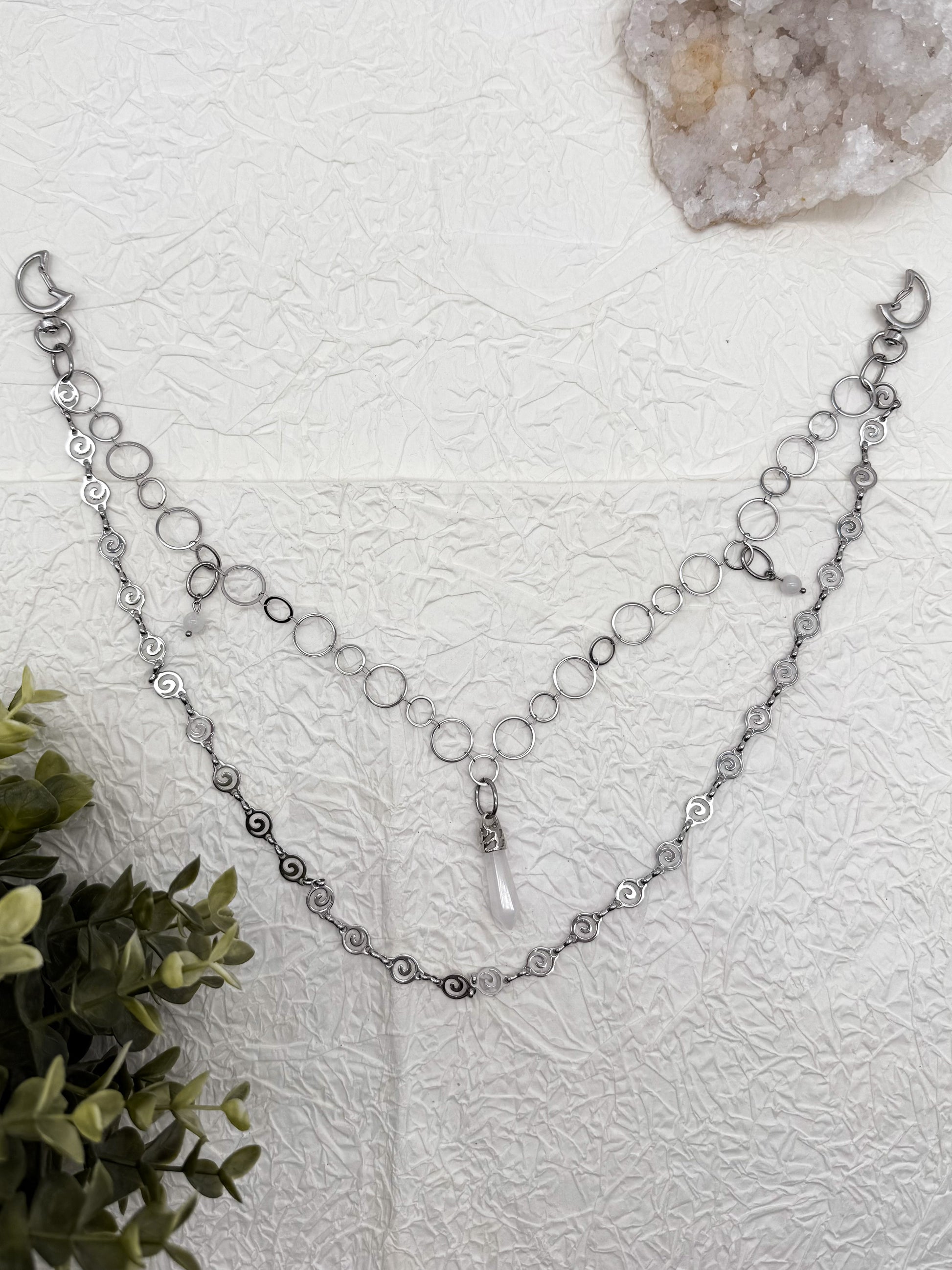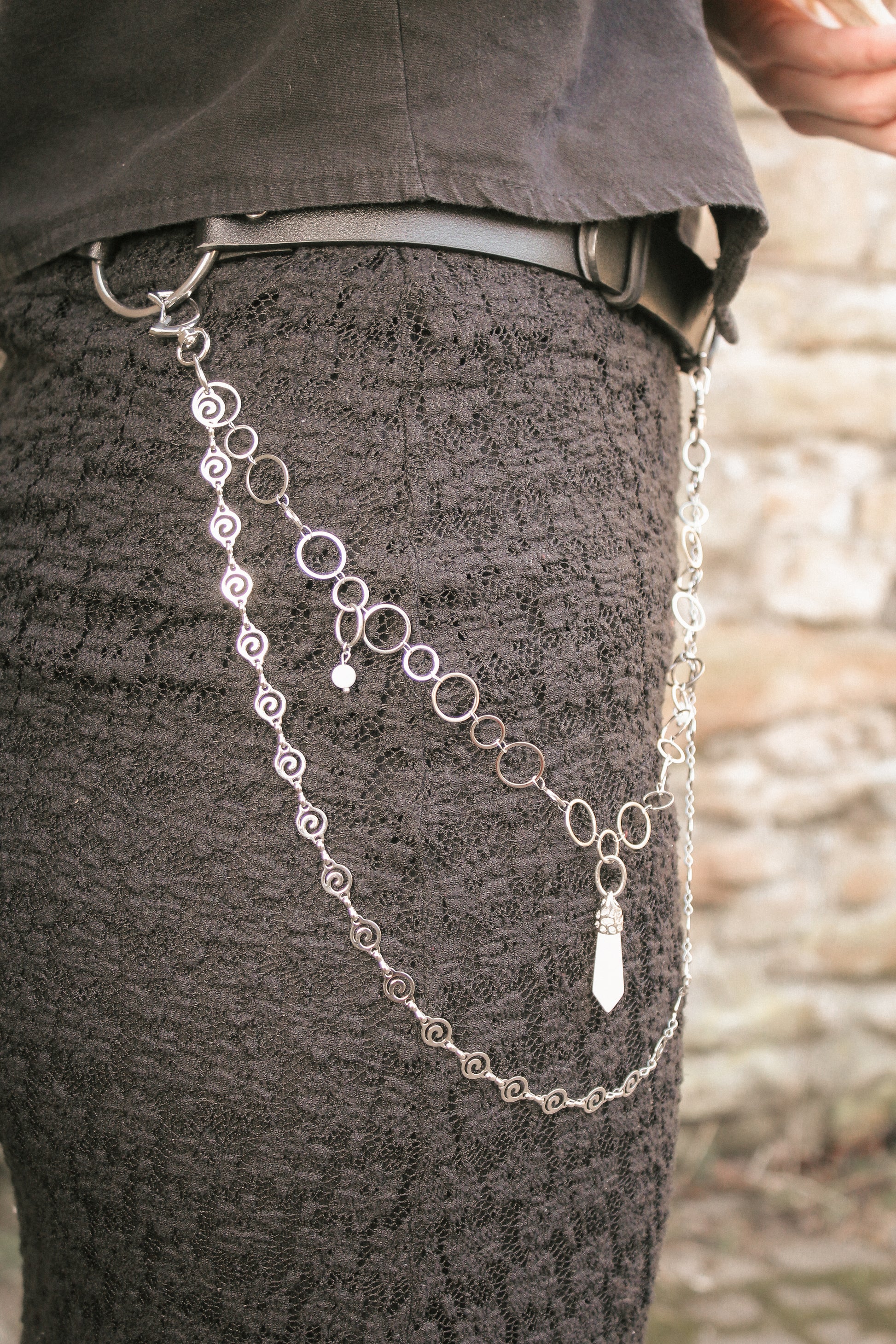 Gürtelkette - Taschenkette mit Mondstein & Bergkristall | Silber & Gold | Edelstahl