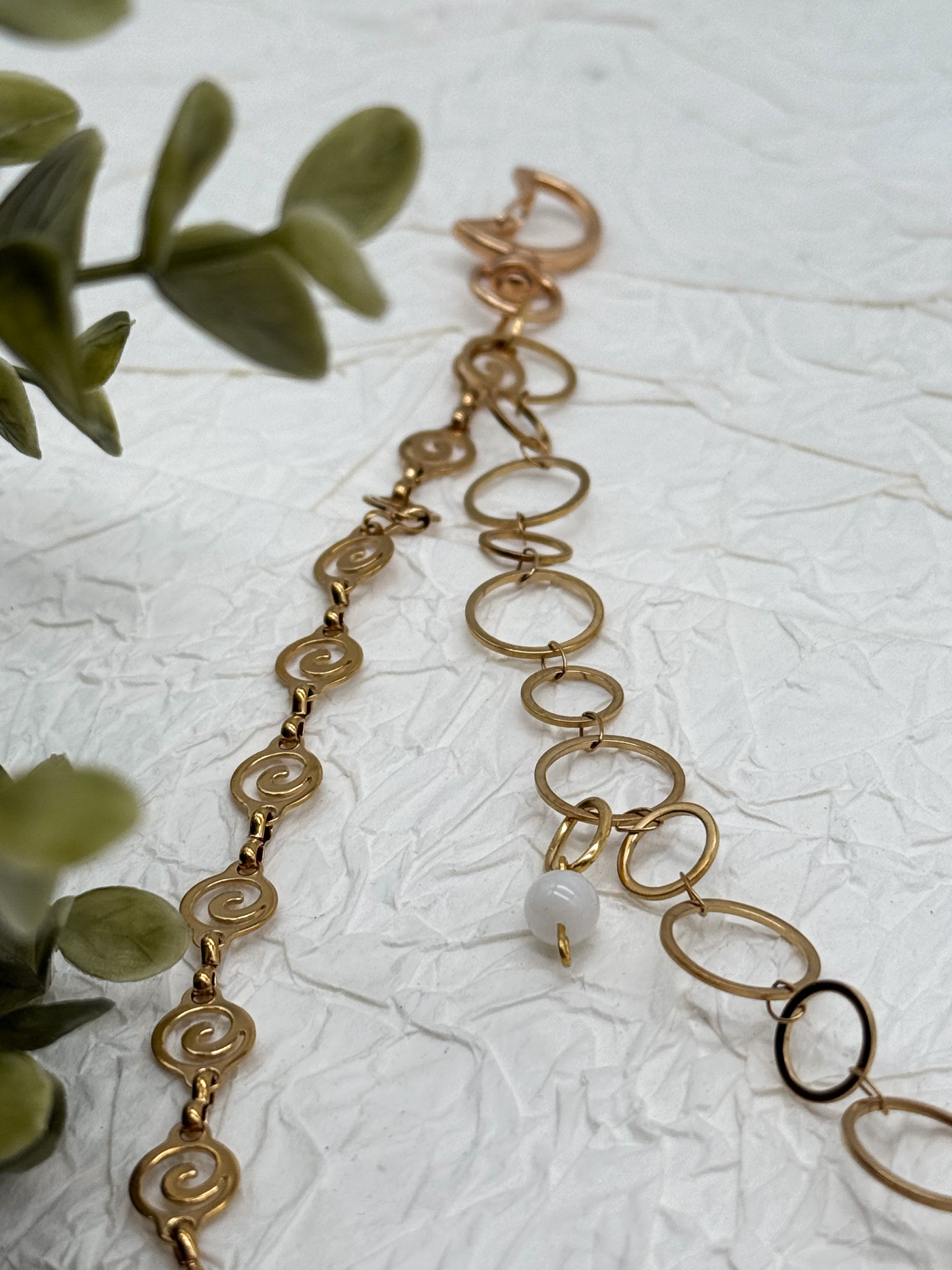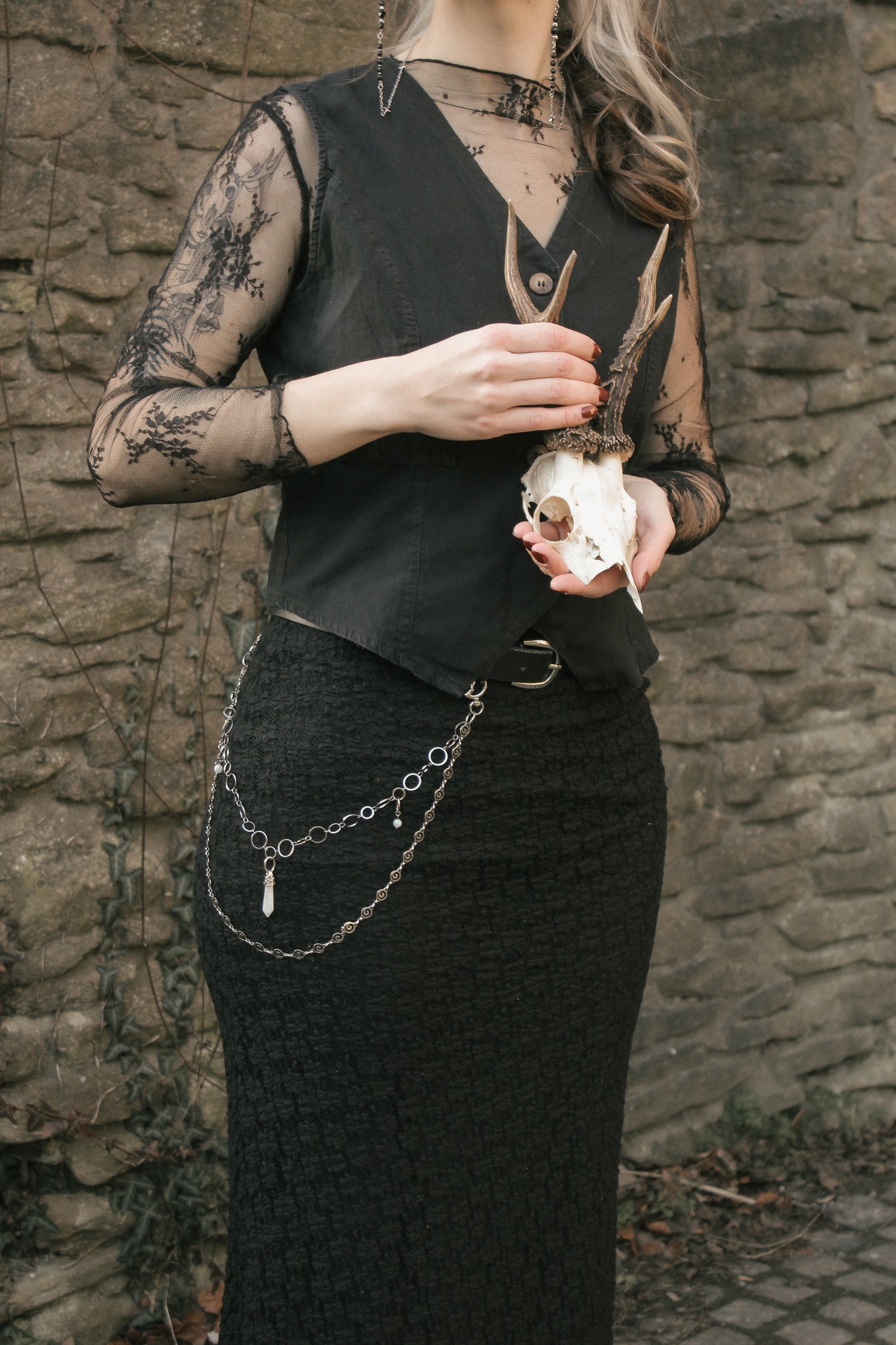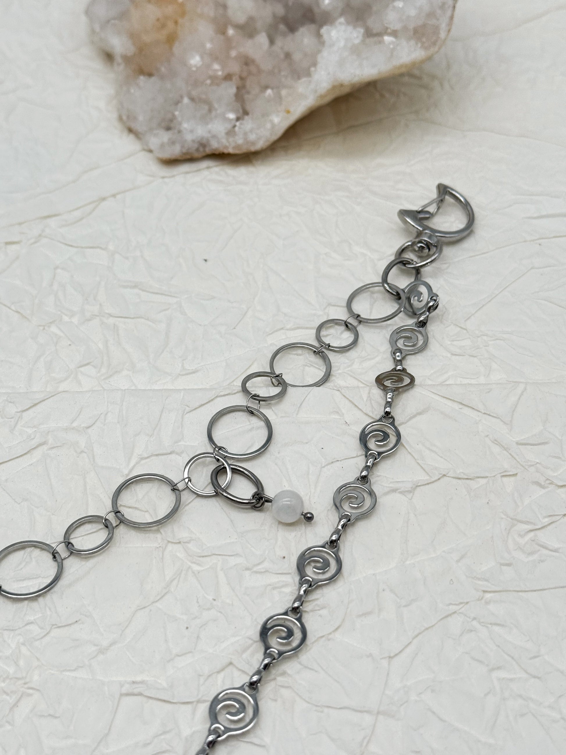 Gürtelkette - Taschenkette mit Mondstein & Bergkristall | Silber & Gold | Edelstahl