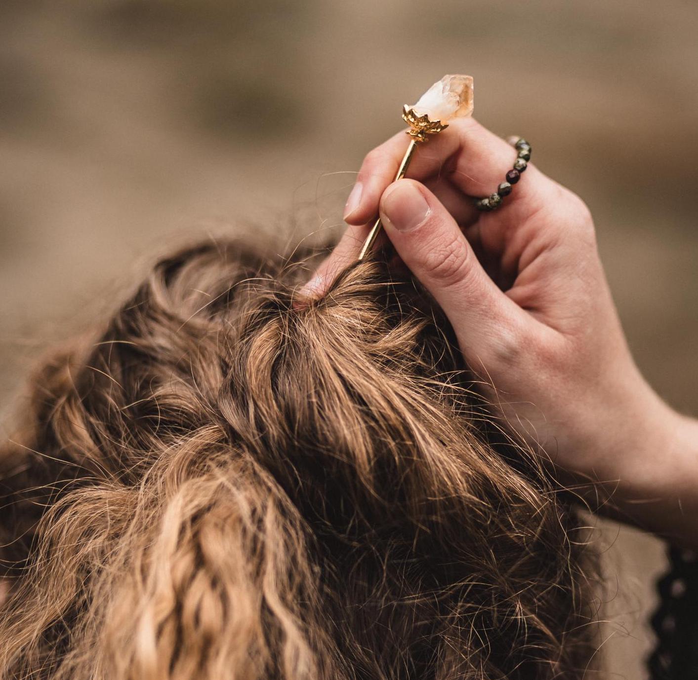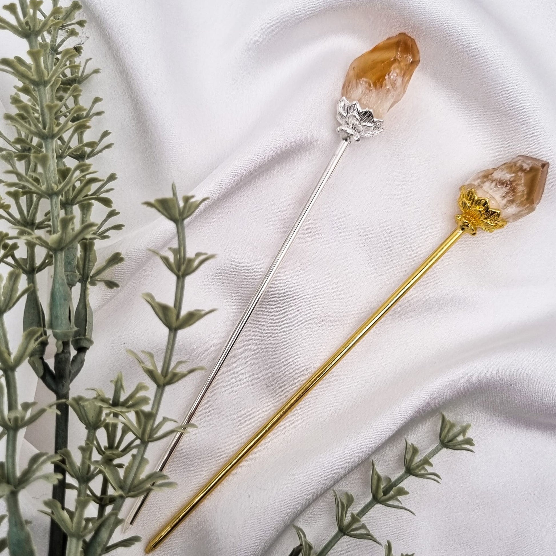 Haarnadeln mit Amethyst & Citrin | Gold und Silber