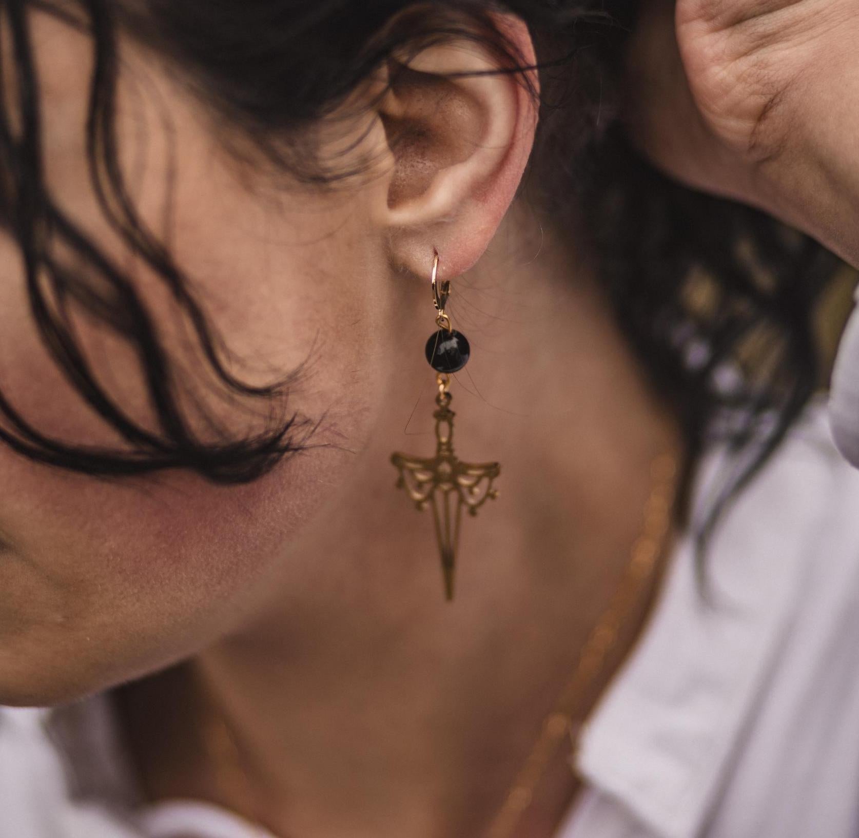 Magisches Schwert Ohrringe | Gold-Schimmer Obsidian | Gold und Silber