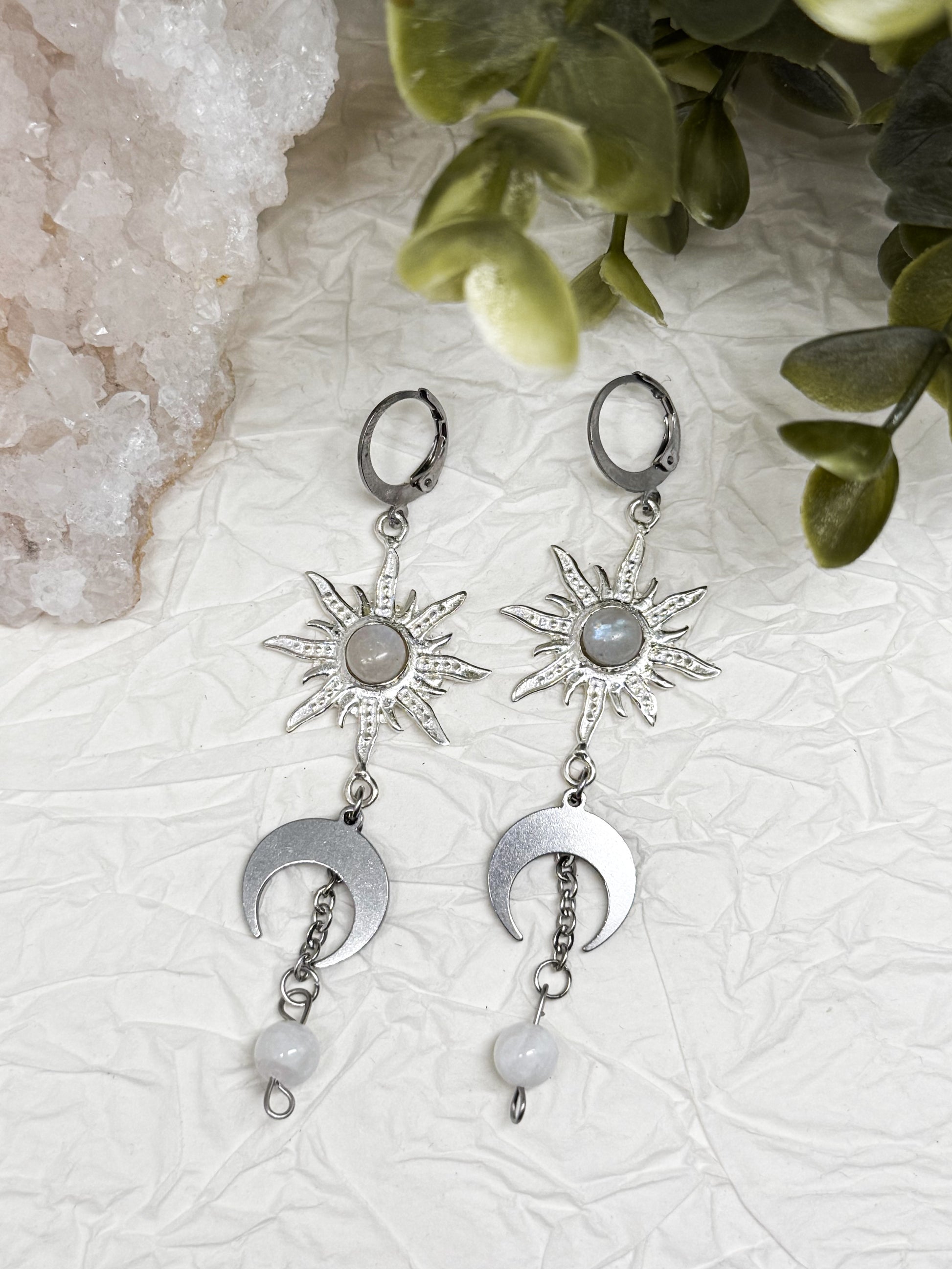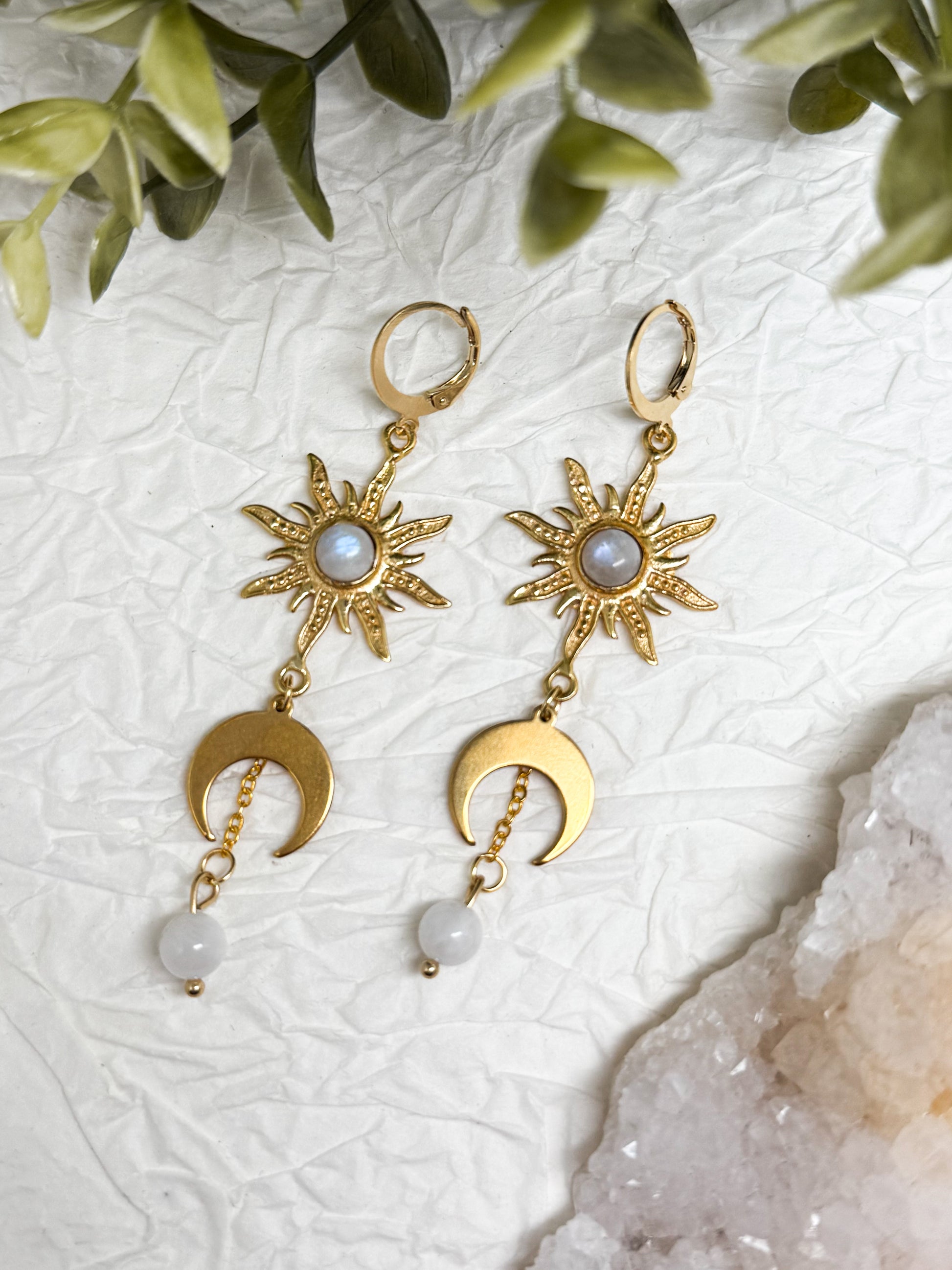 "solis et lunae" Ohrringe mit Mondstein | Gold & Silber | Edelstahl