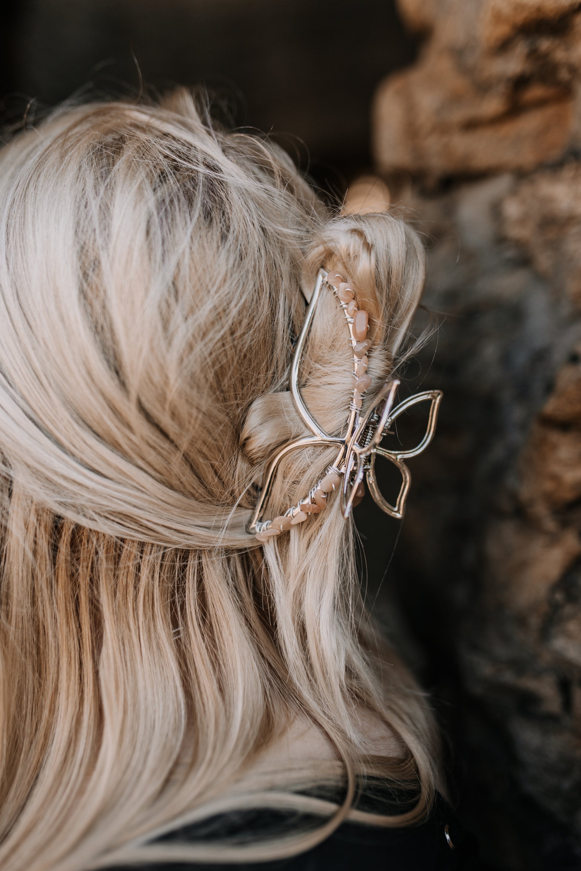 Schmetterling-Haarklammer in Gold und Silber mit Edelsteinen