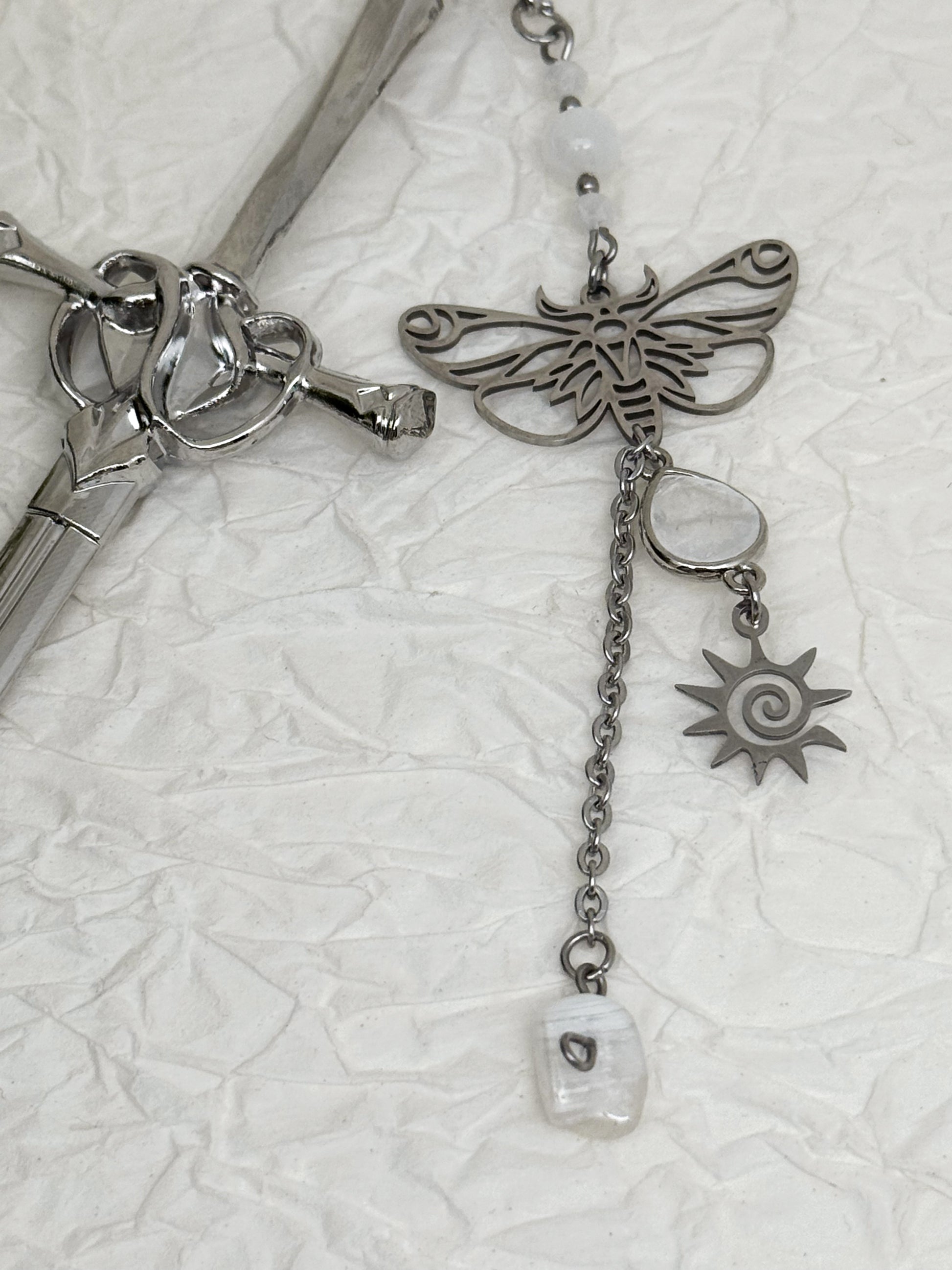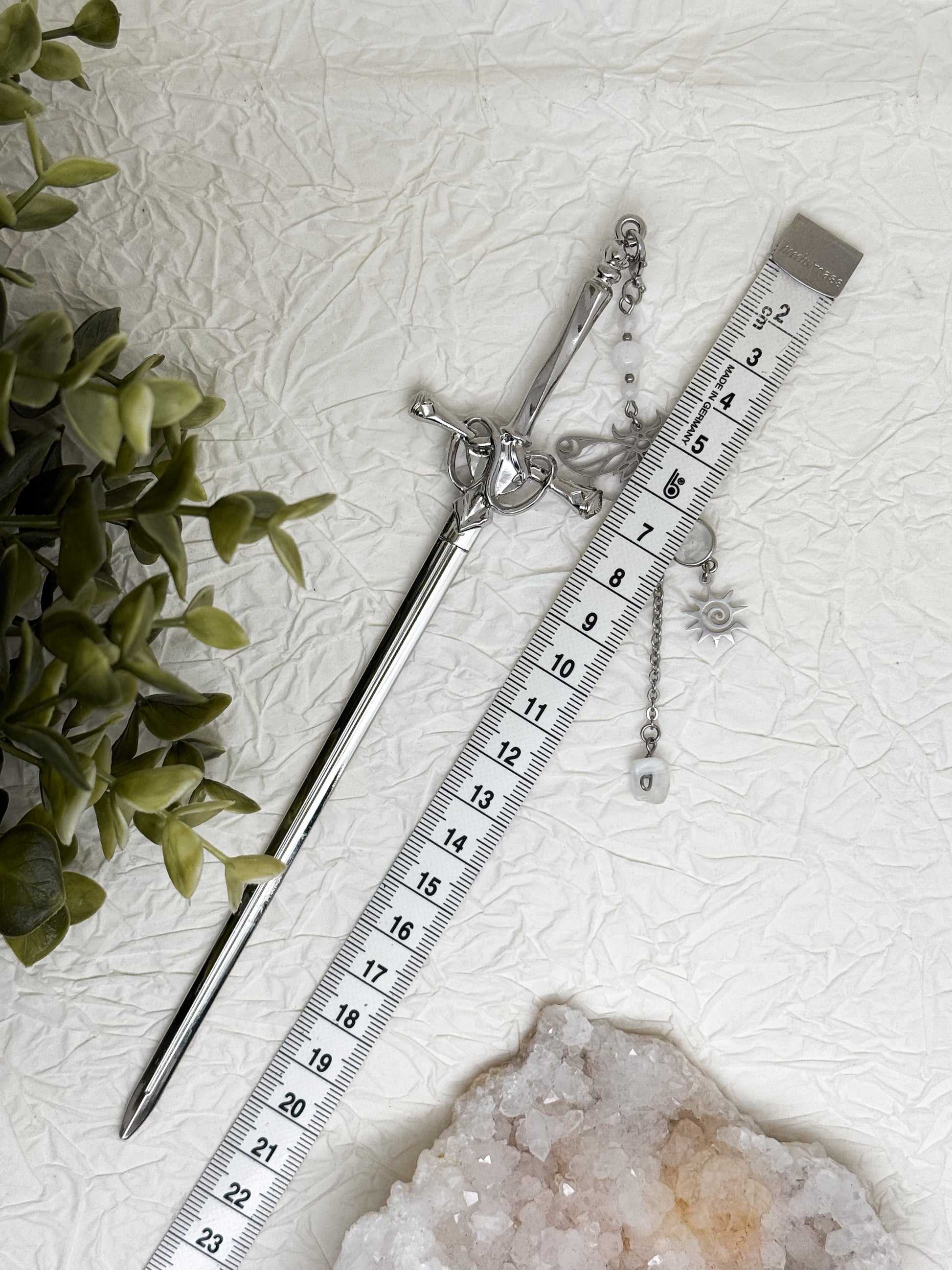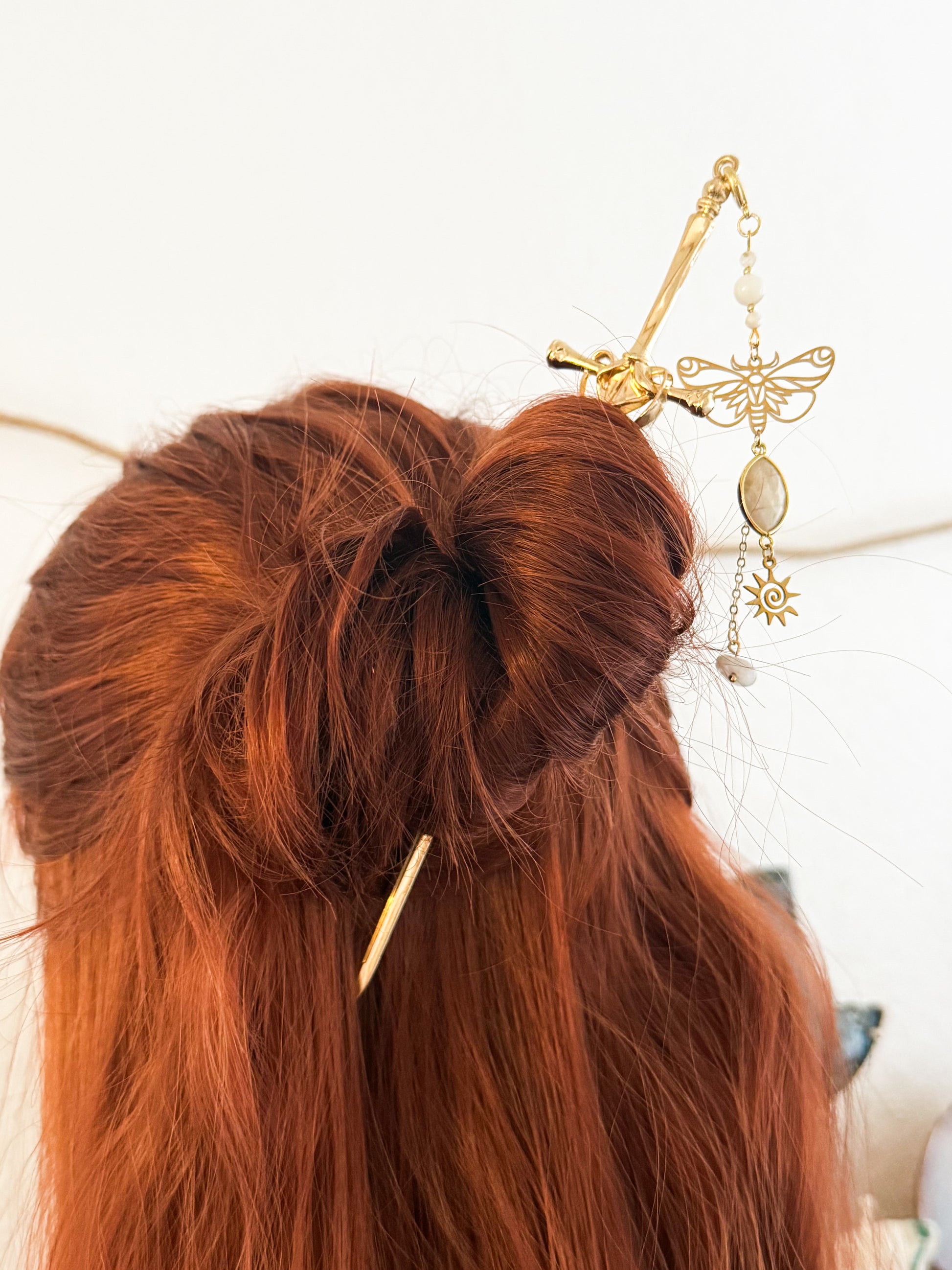 Schwert Haarnadeln mit Sonnenstein, Mondstein und Bergkristall | Gold & Silber