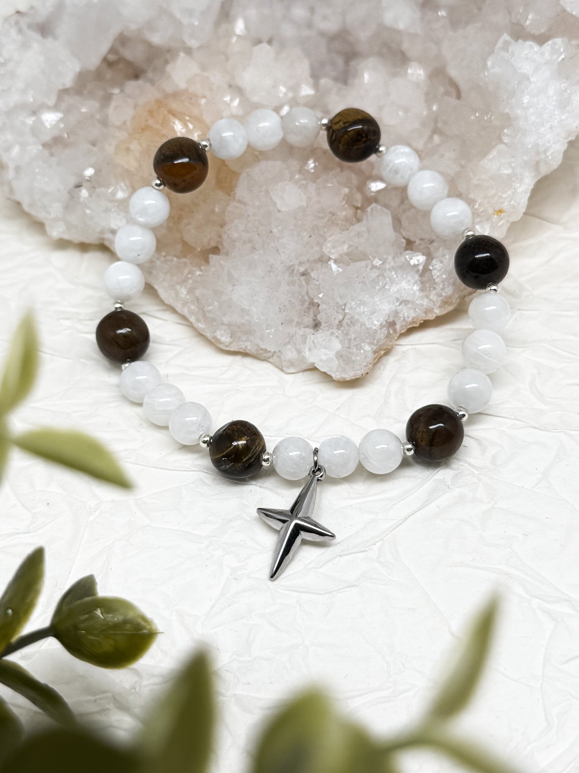 Armband "Feluna" | Mondstein - Tigerauge | Silber & Gold | Edelstahl