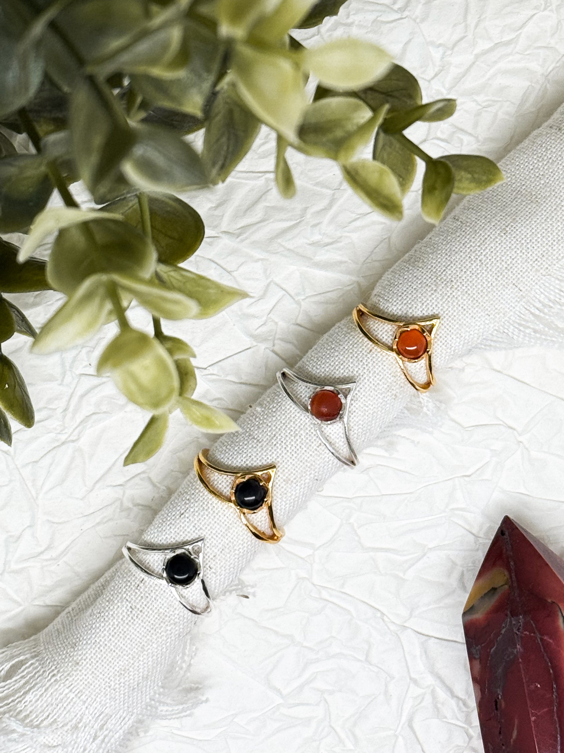 Soulstone Ring - Karneol & Obsidian | Größenverstellbar