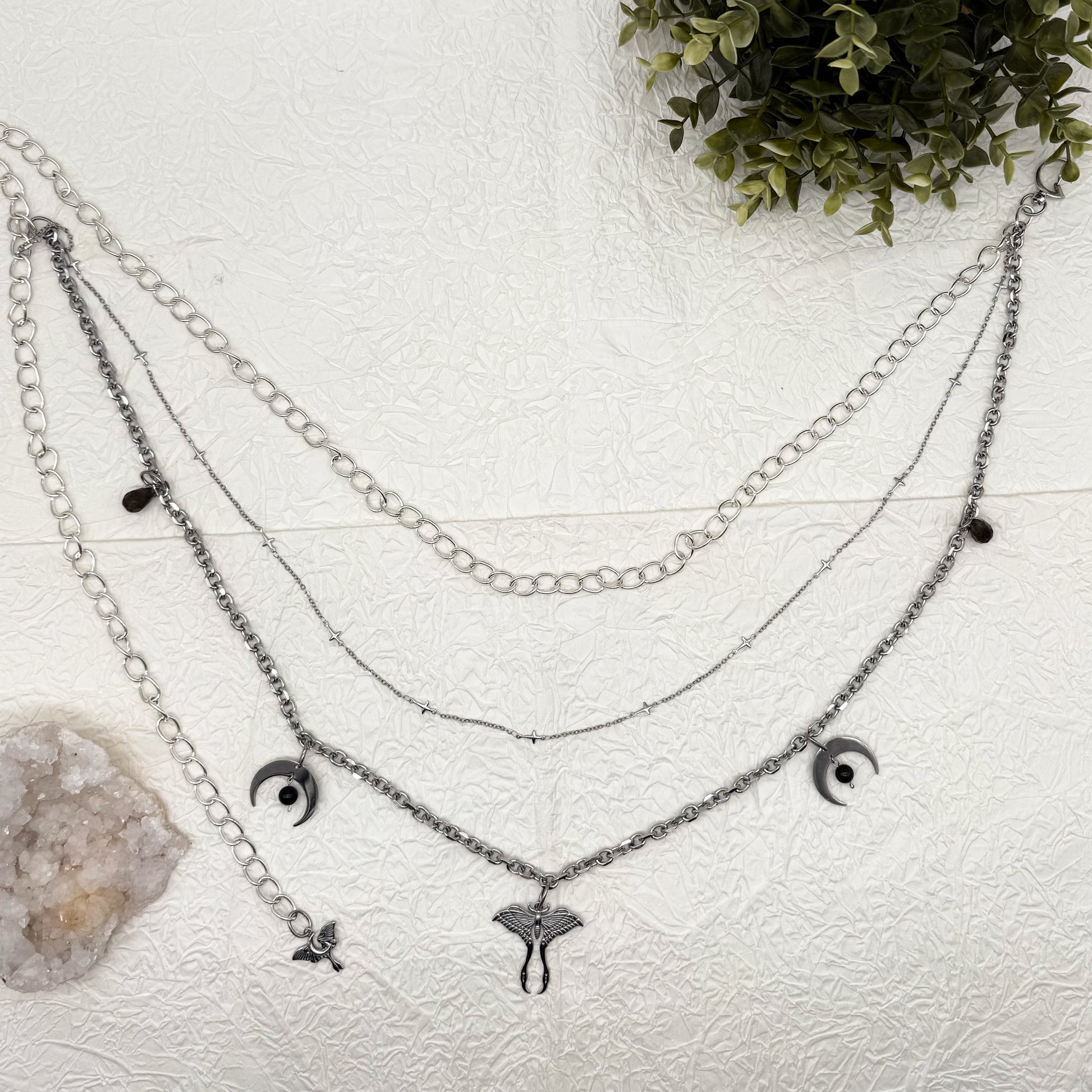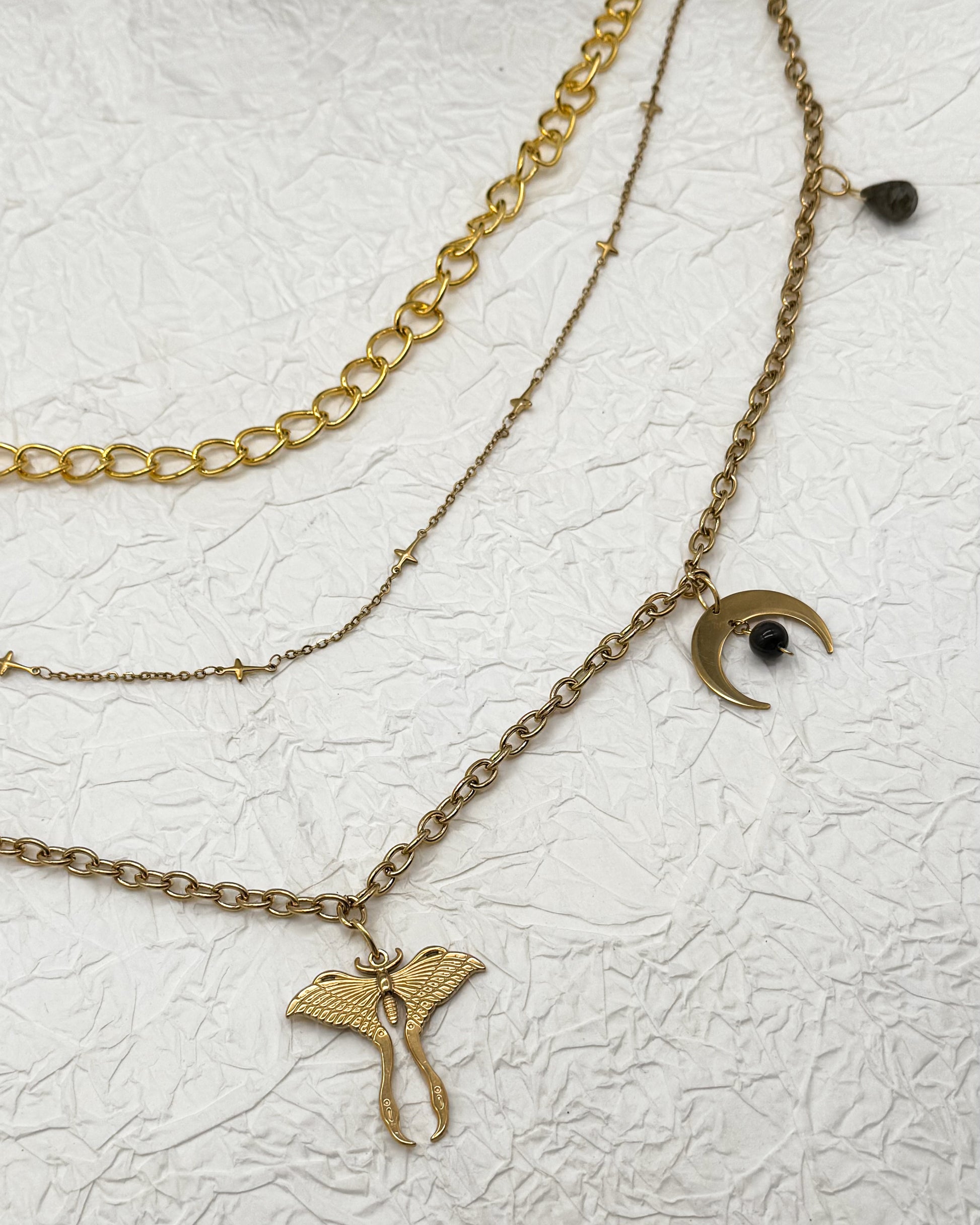 Taillengürtel Dark Moth Labradorit & Obsidian | Silber & Gold | Edelstahl